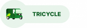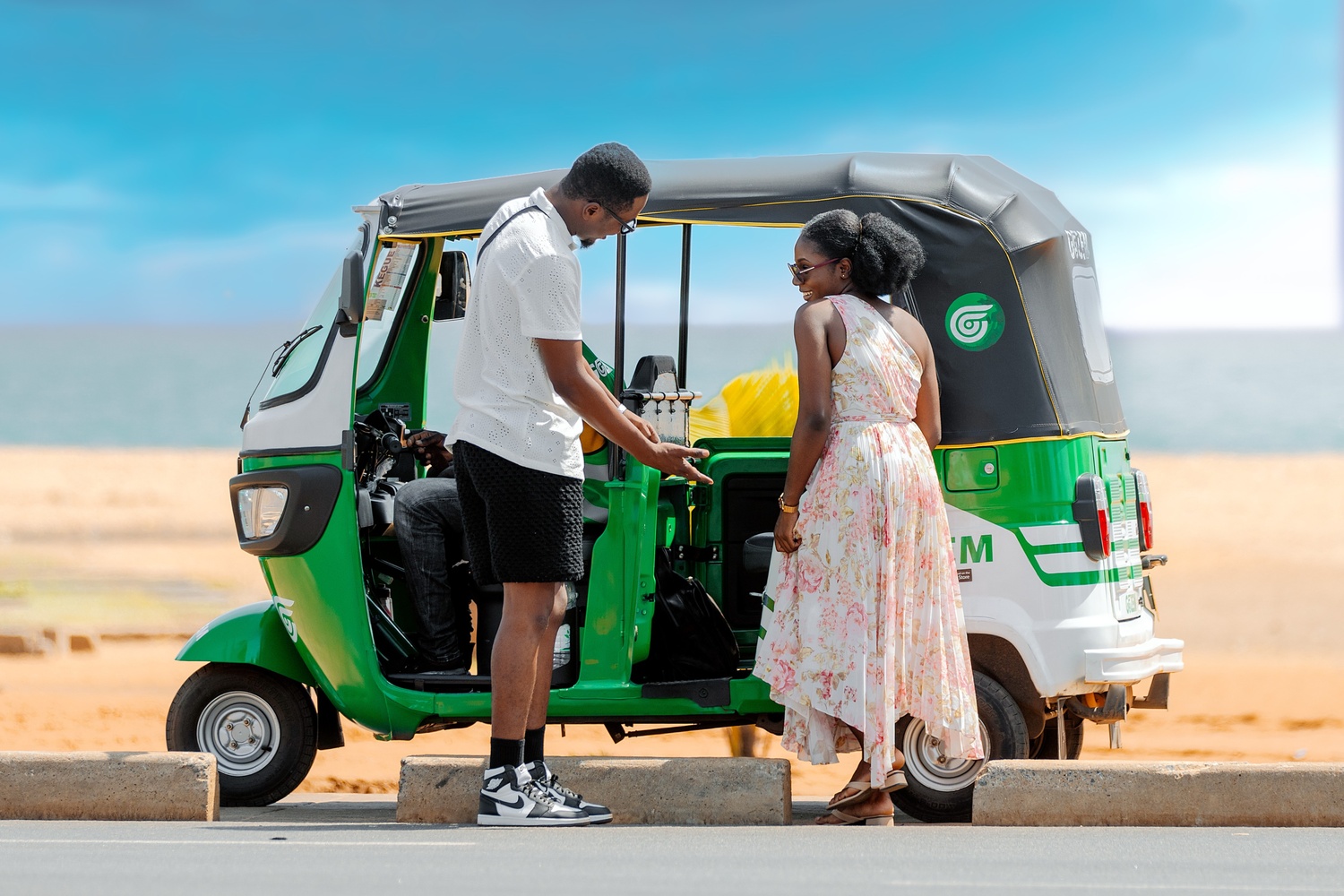 The tricycle’s roof protects you from sun and rain — much more comfortable than a moto.